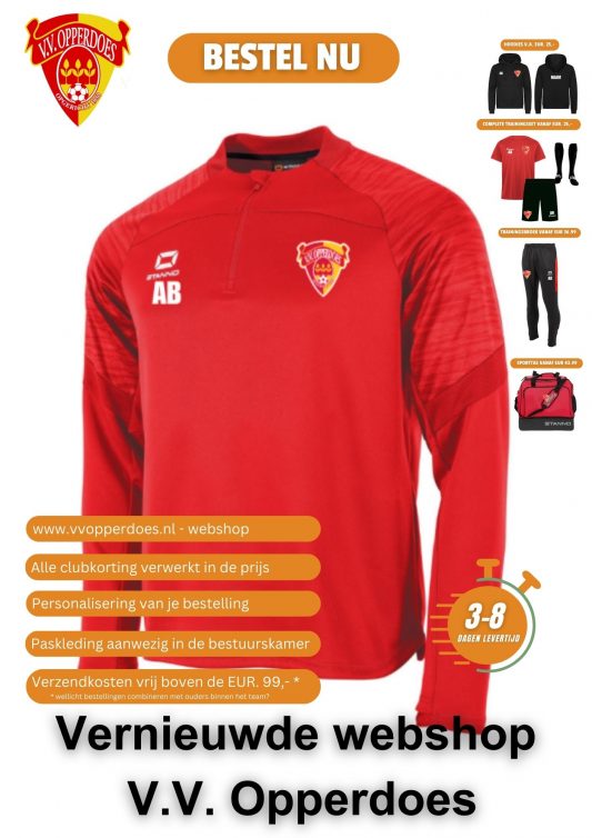 Voetbalvereniging Opperdoes heeft een nieuwe webshop.In deze webshop kun je onder andere een nieuwe lijn trainingskleding, hoodies en tassen aanschaffen voor aantrekkelijke prijzen! Neem een kijkje via deze link